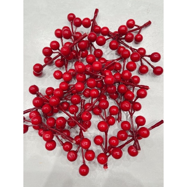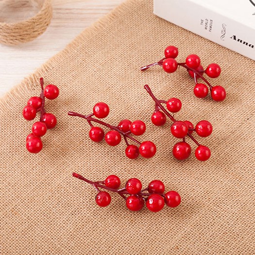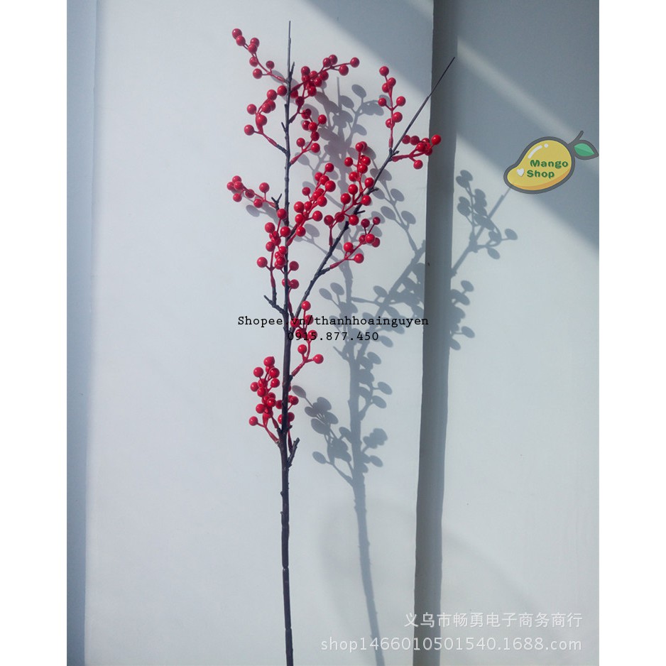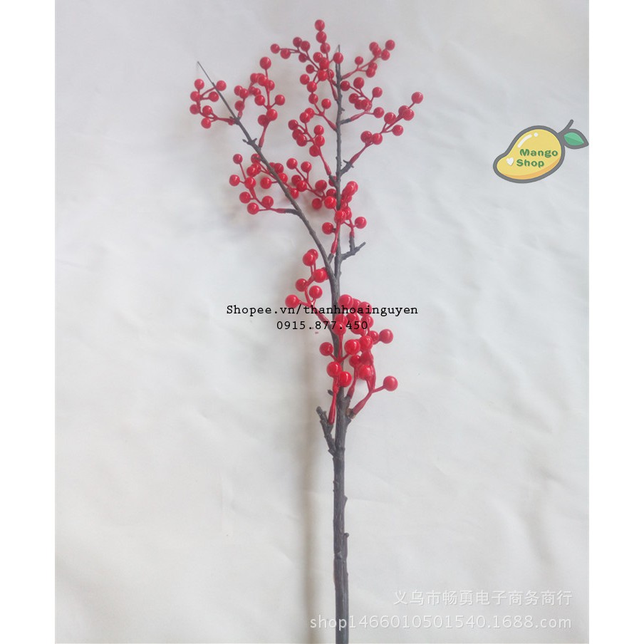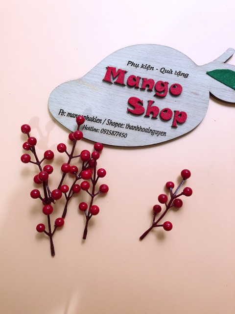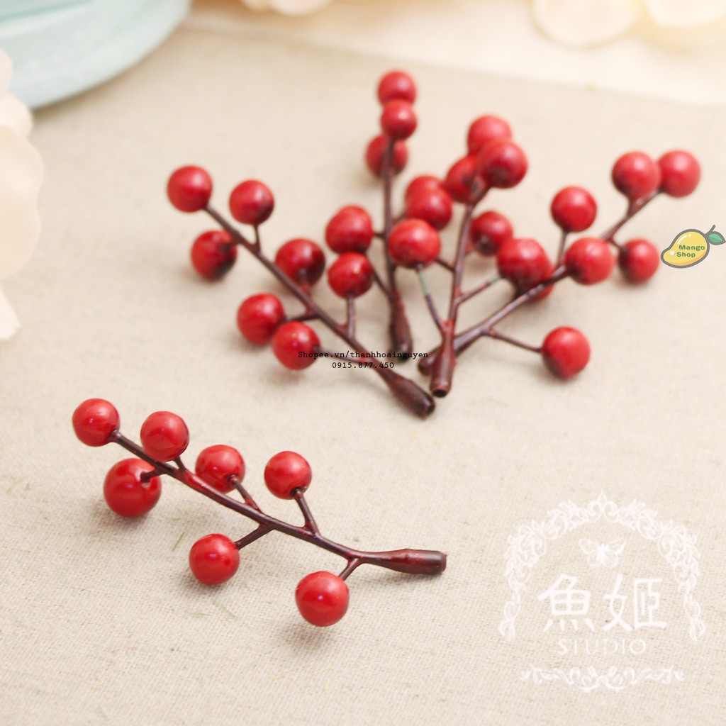 Nhánh 7 hạt mai đỏ phụ kiện chụp ảnh và trang tríThích hợp trang trí nhà cửa và décor chụp ảnh