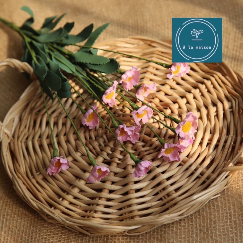 🕊 Chi tiết : Một cành nhiều nhánh hoa xinh xắn.Cành, lá được làm chi tiết tỉ mỉ theo phong cách Châu Âu. Trang trí không gian mộc mạc tươi tắn.