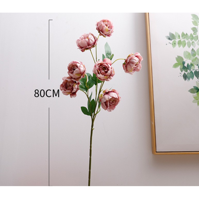 Nhánh hoa mẫu đơn cao 80cm hoa lụa cao cấp