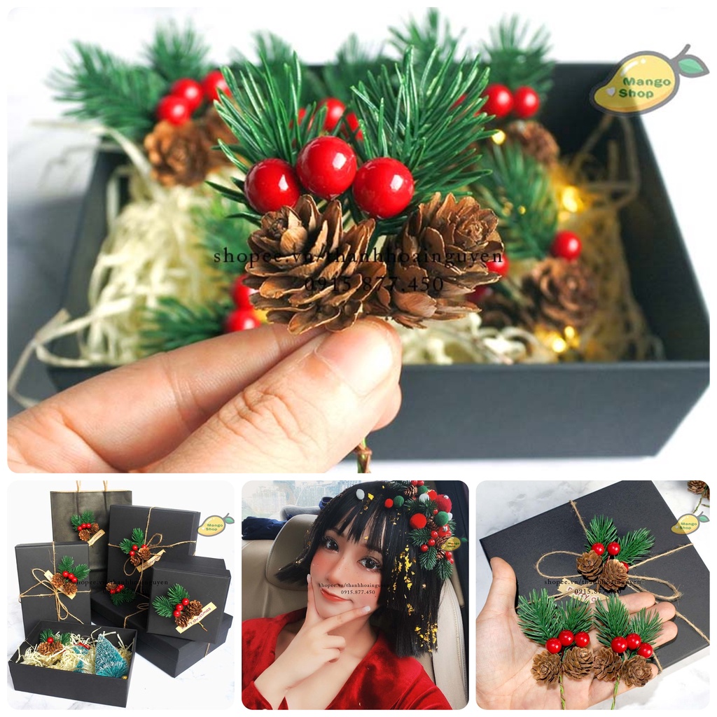 Nhà cửa & Đời sống > Trang trí nhà cửa > Hoa trang trí || Nhánh thông Noel đỏ cài lên hộp quà Giáng Sinh ( phụ kiện Decor Giáng Sinh )Còn hàng