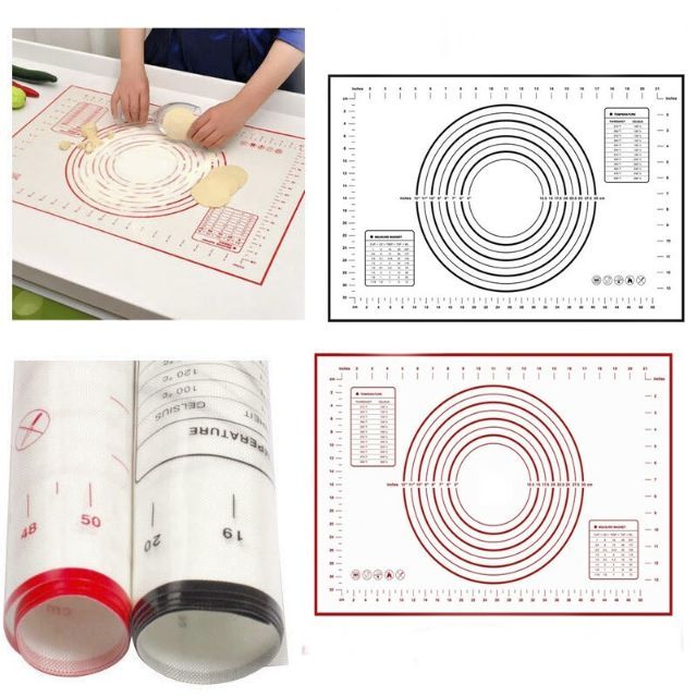 Tấm nhào trộn silicon có chia vạchBạn muốn làm bánh mì, bánh bao… thì có một dụng cụ bạn không thể thiếu được đó chính là tấm nhào bột. Tấm nhào bột được làm bằng silicon chống dính cao, bền đẹp chắc chắn dễ vệ sinh. Ngoài chống dính, tấm nhào bột còn chịu được nhiệt độ cao lên tới 250 độ C giúp bạn thay thế khay nướng trong lò nướng.
