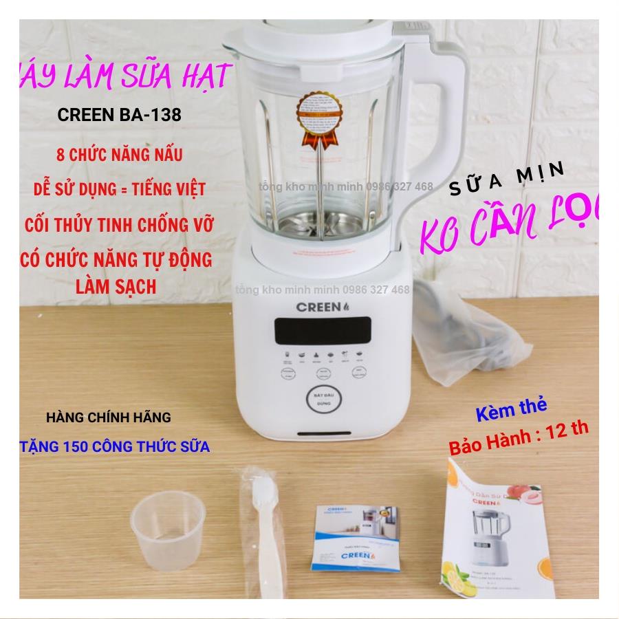Máy làm sữa hạt, máy làm sữa đậu nành CREEN BA-138/ Nineshield KB 502- KB 503CAM KẾT: SỮA SIÊU MỊN KO CẦN LỌC- BẢO HÀNH 12TH