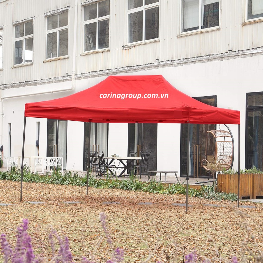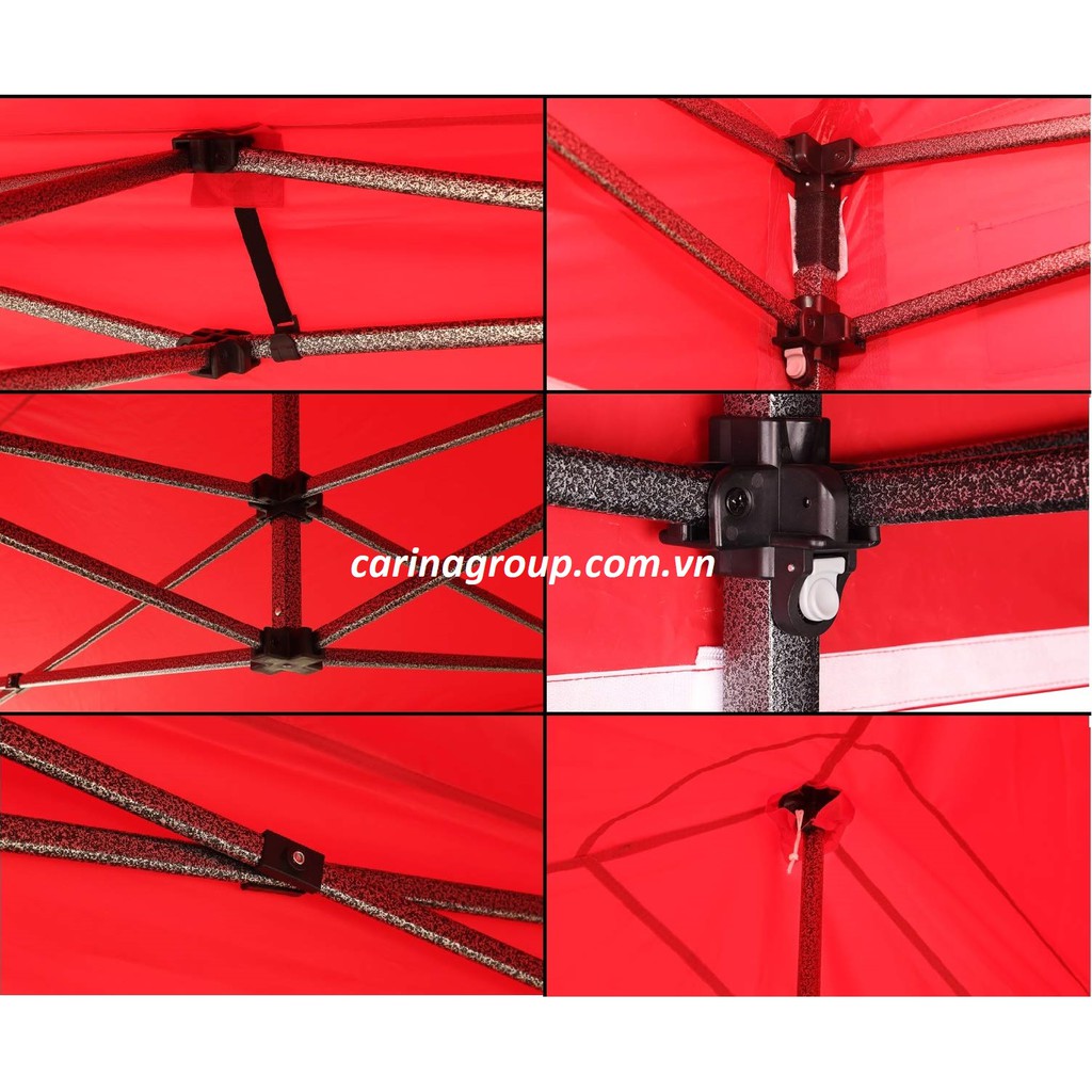 Nhà lều bạt gấp xếp di động được có kích thước 3x4,5m được sử dụng trong các chương trình quảng cáo, triển lãm, hội chợ, tổ chức sự kiện...Khung được làm bằng sắt sơn tĩnh điện, có thể gấp xếp nên di chuyển hay bảo quản rất dễ dàng. Bạt che được làm bằng chất liệu không thấm nước. Sản phẩm đặc biệt phù hợp và rất tiện lợi cho các hoạt động quảng cáo di động ngoài trời. Với chất liệu sắt dày, khung chắc chắn, bền đẹp, khung lều bạt di động gấp xếp luôn là sản phẩm được ưa chuộng của Carina