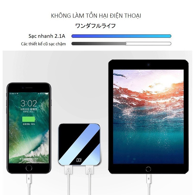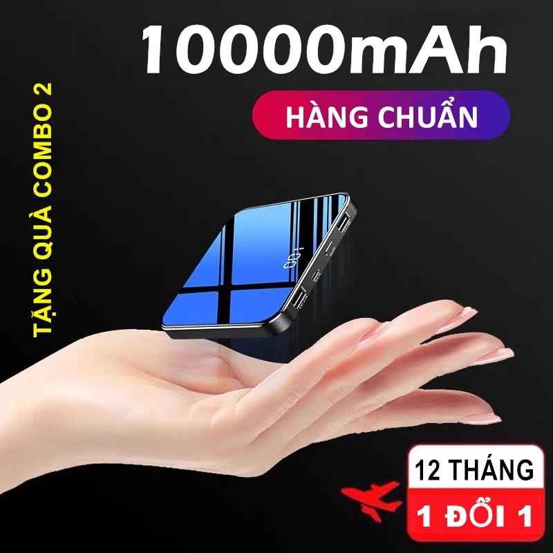 Giới thiệu [Nhập mã giảm giá] Sạc dự phòng 10000mAh Chuẩn -Mặt Kính Đen -Có đèn báo Pin lithium A+polymer -Tự ngắt pin khi sạc đầy