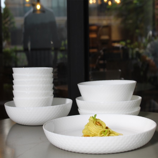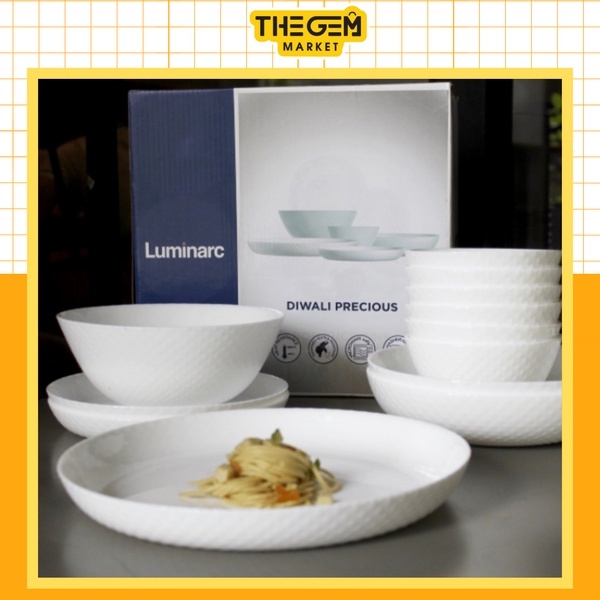 - Bộ Bàn Ăn Tô Chén Đĩa Thuỷ Tinh Cường Lực Luminarc Diwali Precious Trắng 12 món - LUDIPR12M