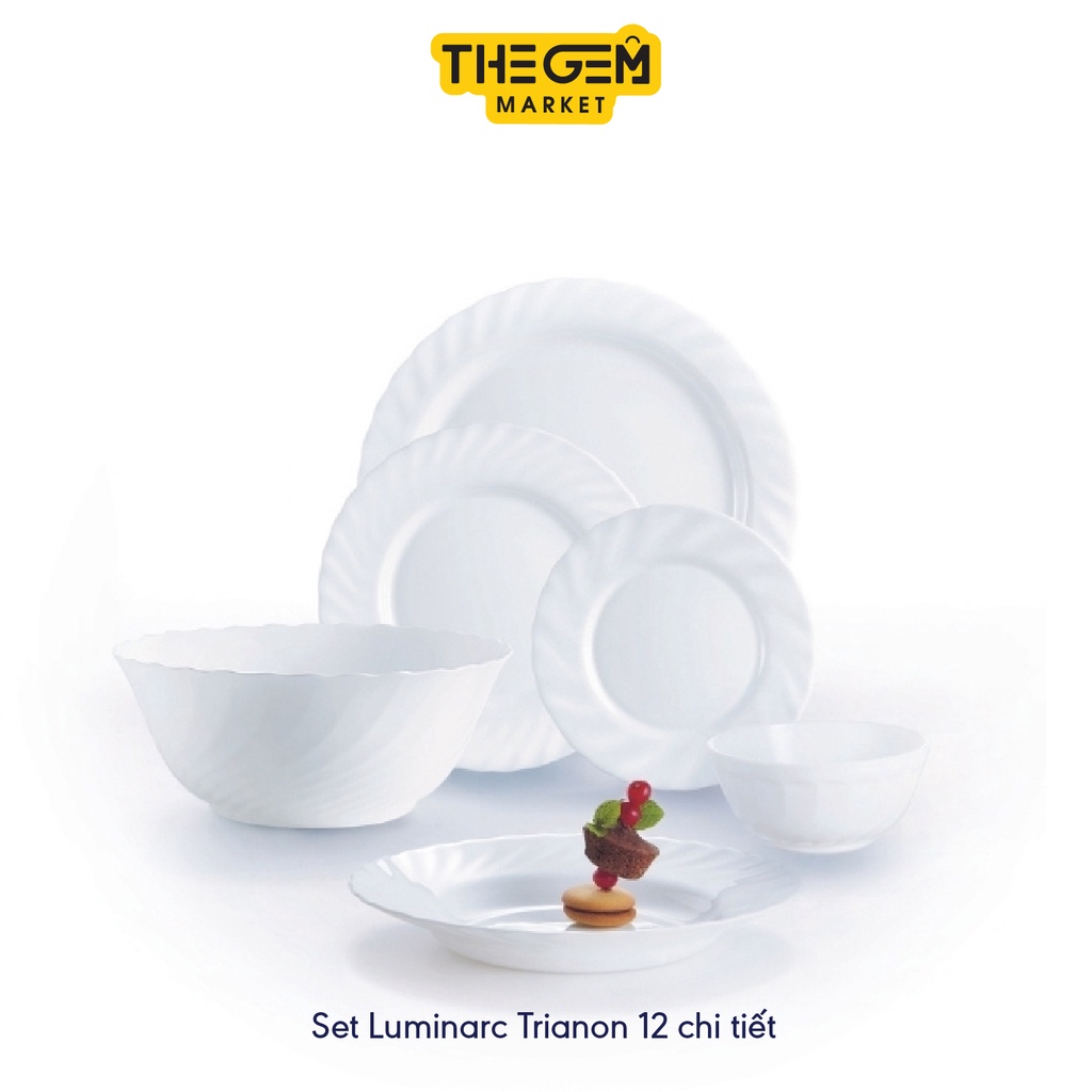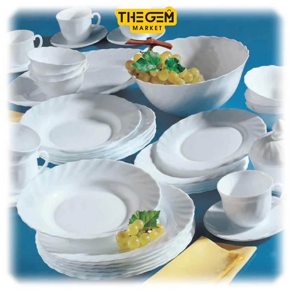 - Bộ Bàn Ăn Tô Chén Đĩa Thuỷ Tinh Cường Lực Luminarc Trianon Trắng 12 món