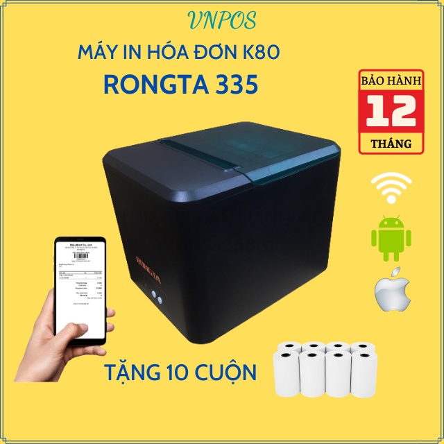 Giới thiệu [Nhập mã THIE9 GIẢM 8%] Máy in hóa đơn K80 RT335 LAN WIFI in Bill không dây từ điện thoại & máy tính PC dùng giấy 80m