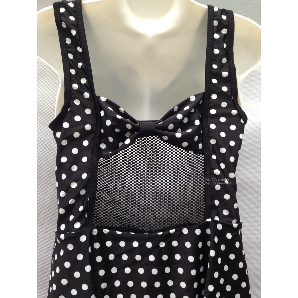 Cùng kiểu dáng áo tắm dáng váy và cách điệu sau lưng này, shop còn có màu chấm bi.