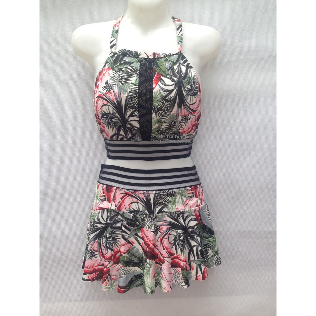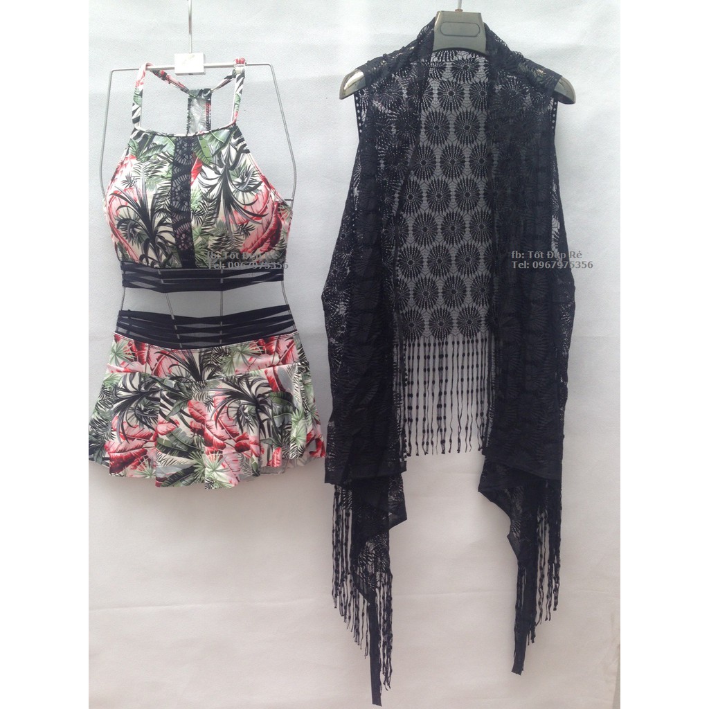 Giới thiệu NHẬP MÃ WAJULY giảm thêm 10% Set áo tắm kèm áo choàng ren họa tiết lá dừa