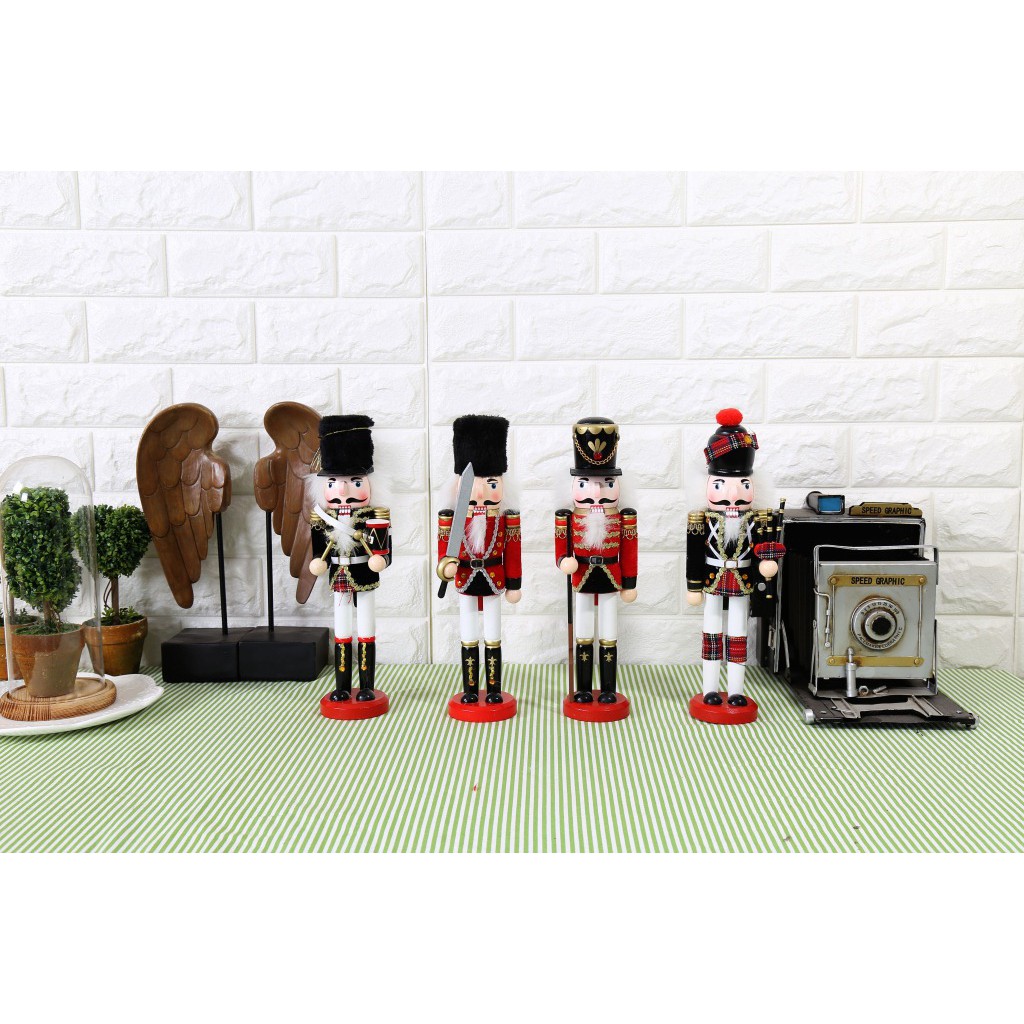 Tượng chú lính gỗ Nut cracker trang trí kệ tivi trang trí phòng khách 💥💯 Nutcracker du nhập vào Việt Nam đã từ khá lâu và mọi người biết đến nhân vật này từ năm 2001 thông qua bộ phim Baerbie in the Nutcracker, gần đây chàng Nutcracker đang được yêu thích hơn bao giờ hết với hình ảnh một anh lính với hàng ria mép đen nhe hàm răng trắng đều và bộ râu dài mọc từ hàm dưới , dáng đứng thẳng tắp và mặc trên người bô quân phục lính hoàng gia. Mô hình chú lính bằng gỗ là món đồ trang trí kệ tivi, trang trí phòng khách độc đáo ấn tượng cho căn phòng của bạn, là món quà tặng thú vị dành cho người thân bạn bè.