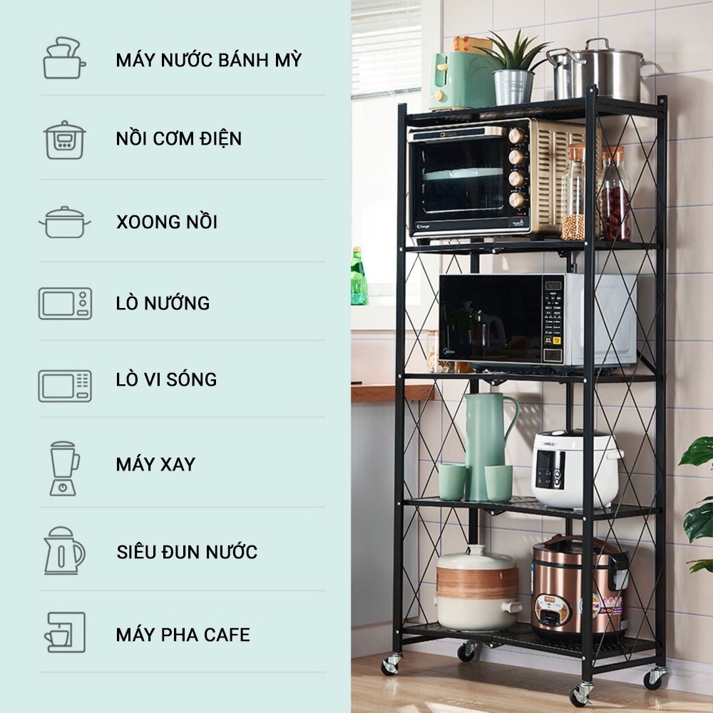 Giới thiệu [Nhập SKAMSALE01 giảm ngay 10%] Kệ sắt 5 tầng gấp gọn có bánh xe chống gỉ tiện dụng cho bếp của bạn