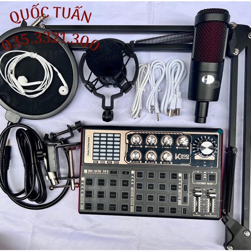 Mới Nhất Bộ Thu Âm Micro TH2068 + Card K300 Plus 2022 + Tai nghe + chân kẹp màng lọc bảo hành 1 năm