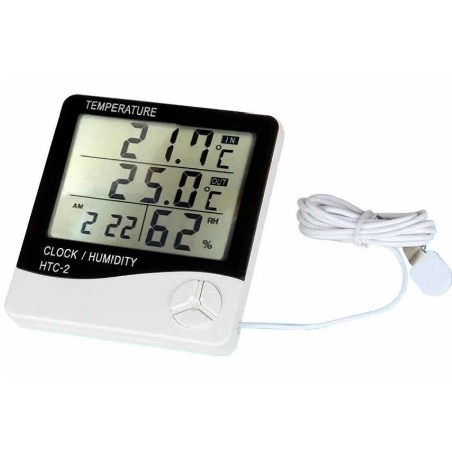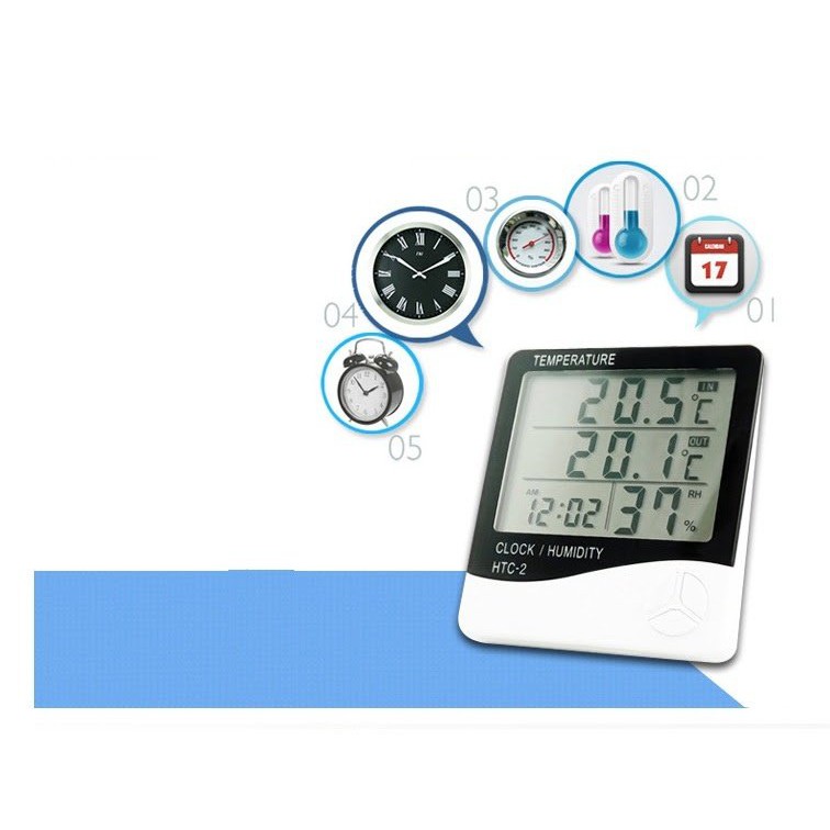 Nhiệt ẩm kế điện tử đa chức năng 6 in 1 HTC-2Nhiệt độ, độ ẩm trong không khí trong gian phòng nhà bạn, nếu không được điều chỉnh hợp lý, rất có thể gây nguy hại đến sức khỏe của trẻ em và các thành viên trong gia đình. Nhiệt ẩm kế HTC-2 sẽ giúp bạn làm được điều đó. Bạn sẽ dễ dàng điều chỉnh nhiệt độ điều hòa cho phù hợp (không chênh quá nhiều với nhiệt độ ngoài trời tránh sốc nhiệt), bật máy phun sương nếu trong phòng quá khô hoặc bật máy hút ẩm nếu độ ẩm quá lớn.