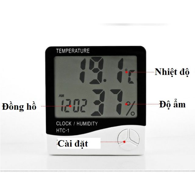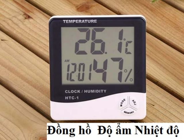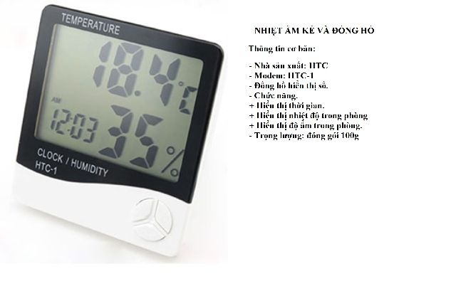 Nhà cửa & Đời sống > Trang trí nhà cửa > Đồng hồ || Nhiệt ẩm kế điện tử HTC-1 hiển thị giờ, nhiệt độ và độ ẩm trong phòng cũng như ở vườn lanCòn hàng