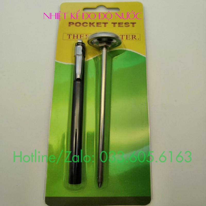 + Nhiệt kế gồm phần mặt đồng hồ tròn để báo nhiệt độ, phần que nhọn dài bằng inox không gỉ.