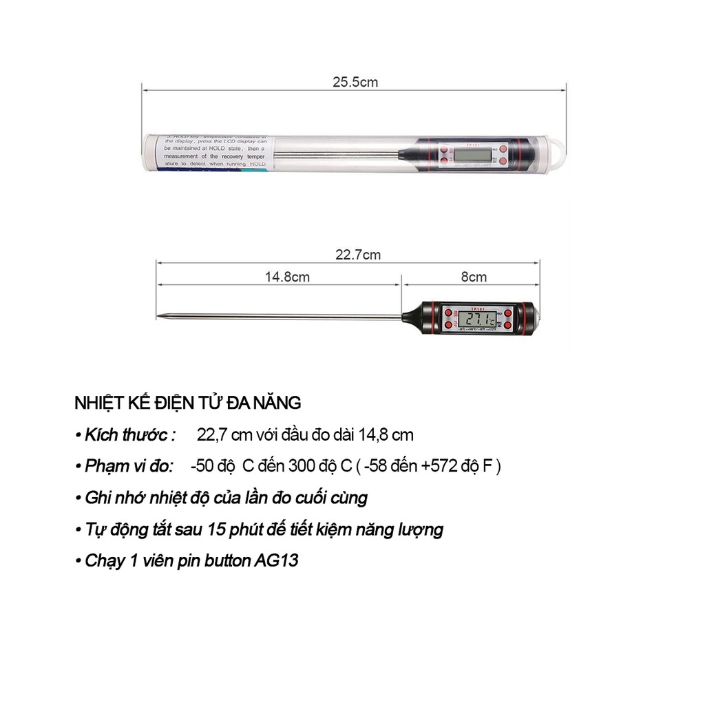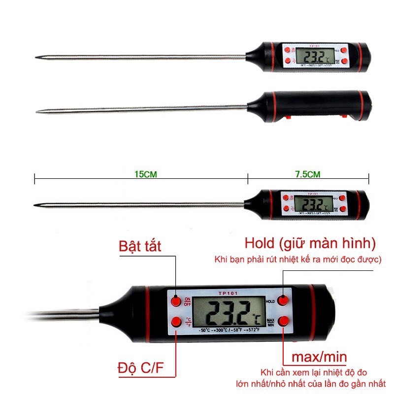 Nhiệt Kế Điện Tử Đa Năng Đo Nhiệt Độ Nước, Sữa, Thực Phẩm Tiện Lợi
