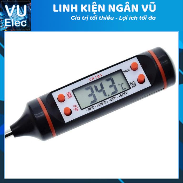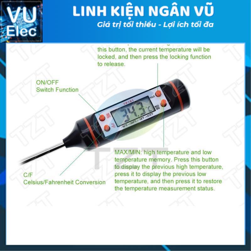 Nhiệt kế hiển thị kỹ thuật số TP101 với đầu dò dùng để đo nhiệt độ thực phẩm trong nhà bếp và lò BBQ, sửa, lò nướng.Chiều dài đầu dò: 15CM; đầu dò được làm bằng thép không gỉ