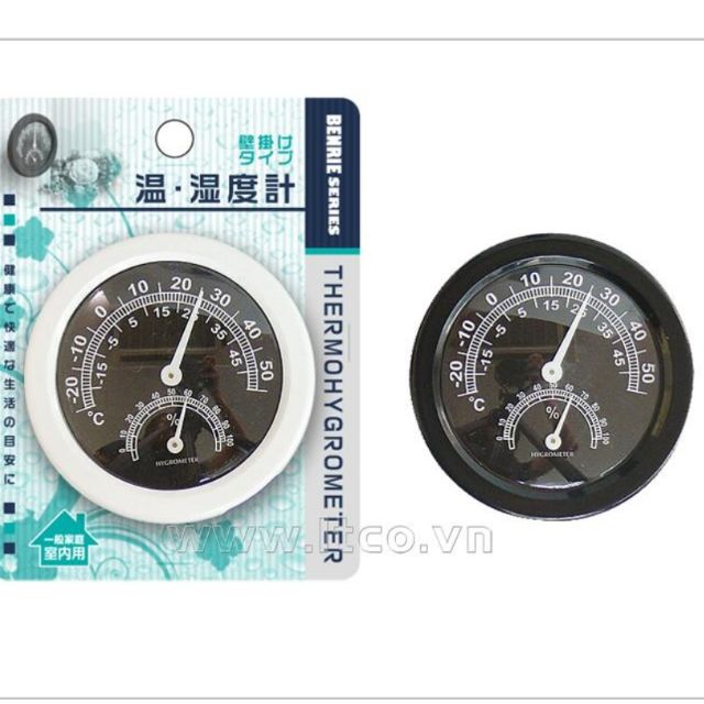 Công dụng: Đo nhiệt độ và độ ẩm trong phòng, dùng gắn trên tường, vạch kẻ lớn phía trên dùng đo nhiệt độ môi trường, vạch kẻ nhỏ phía dưới dùng đo độ ẩm (%). -