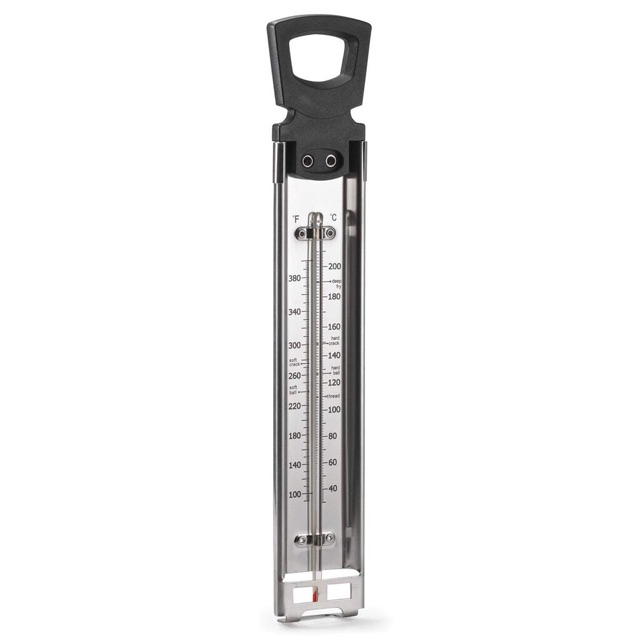Nhiệt kế kẹo dạng thuỷ ngân có móc cài phía sau.Dùng đo nhiệt độ món ăn, dung dịch, chất lỏng. Sản phẩm ko thể thiếu khi nấu kẹo sữa hạt, nấu nước đường làm macaron.