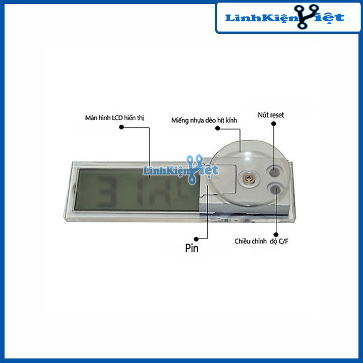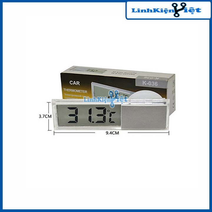 Nhiệt Kế Kỹ Thuật Số LCD K-036Nhiệt kế kỹ thuật số hiển thị LCD thường được sử dụng trong ô tô được sử dụng để đo nhiệt độ có thể hiện thị ở 2 dạng là độ C hoặc độ F. Có thiết kế nhỏ gọn với kích thước chỉ có 9.4x3.7cm, có màn hình LCD hiển thị trong suốt có tính thẩm mỹ cao. ngoài ra nhiệt kế kỹ thuật số K-036 còn có miếng nhựa dẻo hít kính có thể đặt trên kính ô tô để tiện cho việc theo dõi nhiệt độ trong xe.