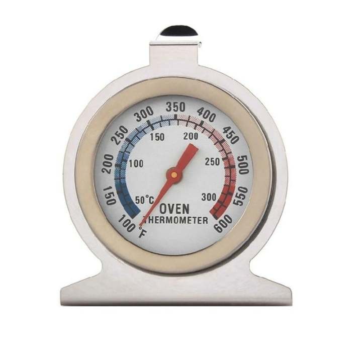Nhiệt kế lò nướng là một dụng cụ làm bánh được làm bằng chất liệu inox hoặc thép không gỉ, có vạch chia độ từ 0 độ C đến 300 độ C. Nên nhiệt kế lò có thể đo nhiệt độ lò chính xác đến từng độ C.