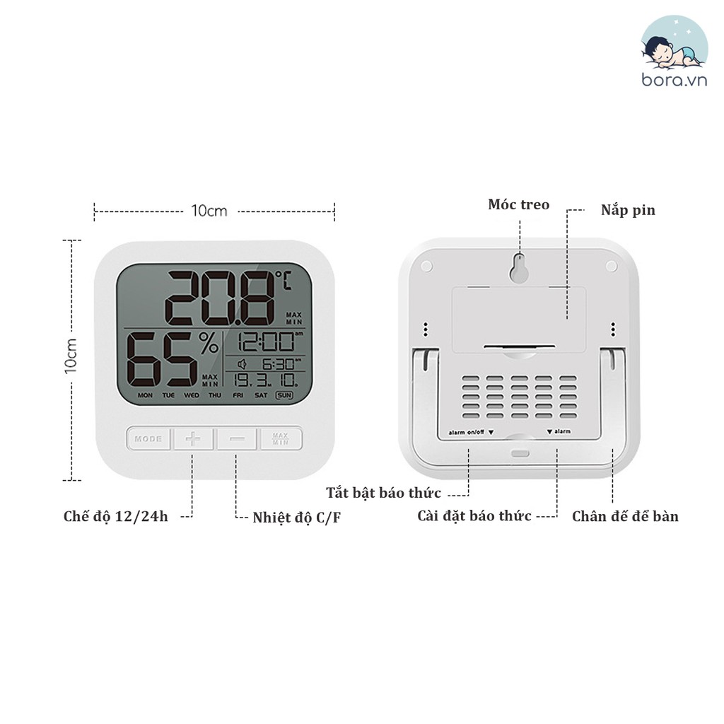 ➖ Nhiệt ẩm kế chuyển đổi được chế độ giờ 12/24 giờ