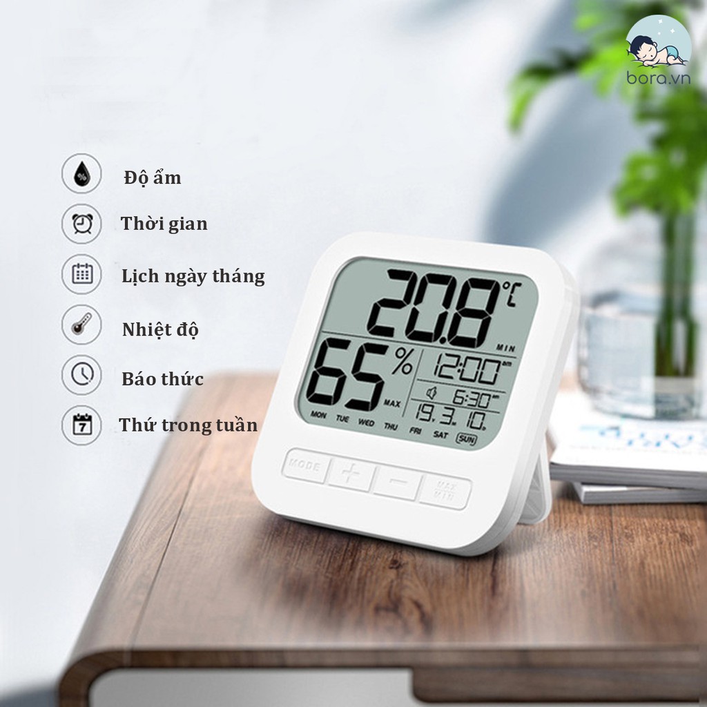 Nhiệt kế phòng, nhiệt ẩm kế điện tử 6 trong 1, bảo hành 12 tháng, tặng kèm 2 pin AAA