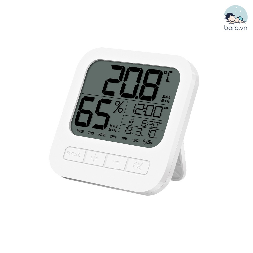 ➖ Nhiệt ẩm kế hiển thị thời gian, ngày trong tuần, ngày tháng và thời gian báo thức trên cùng một màn hình.