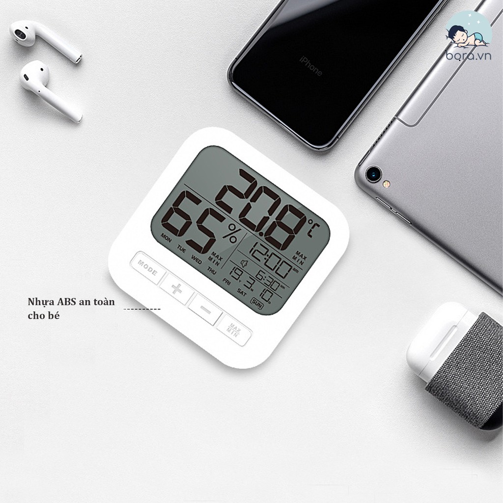 ➖ Nhiệt ẩm kế có chức năng báo thức, chế độ báo lại sau 5 phút.