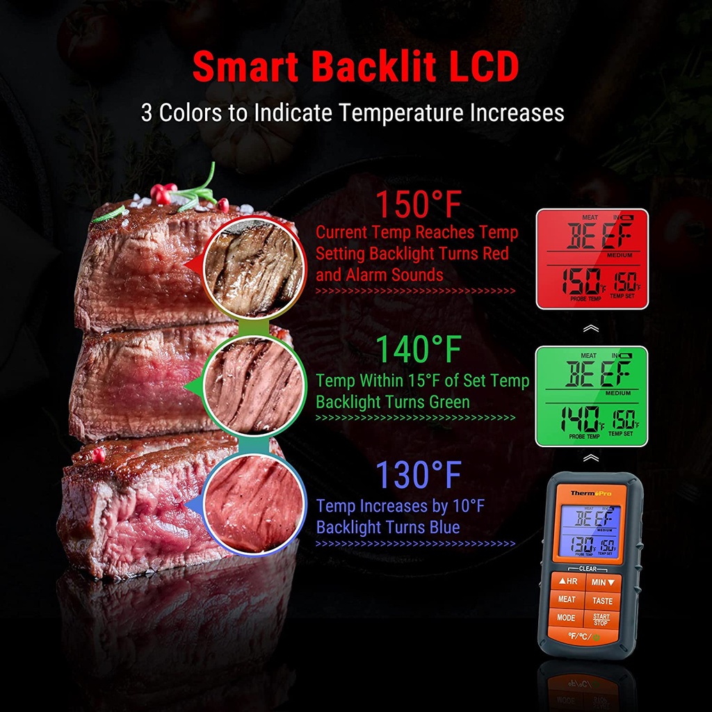 Với màn hình LCD lớn, có đèn nền thông minh, có thể chuyển đổi màu trong quá trình nấu và âm thanh báo động khi thịt của bạn đã chín đến mức hoàn hảo, bạn sẽ không bao giờ nấu quá chín hoặc chín thịt nữa.
