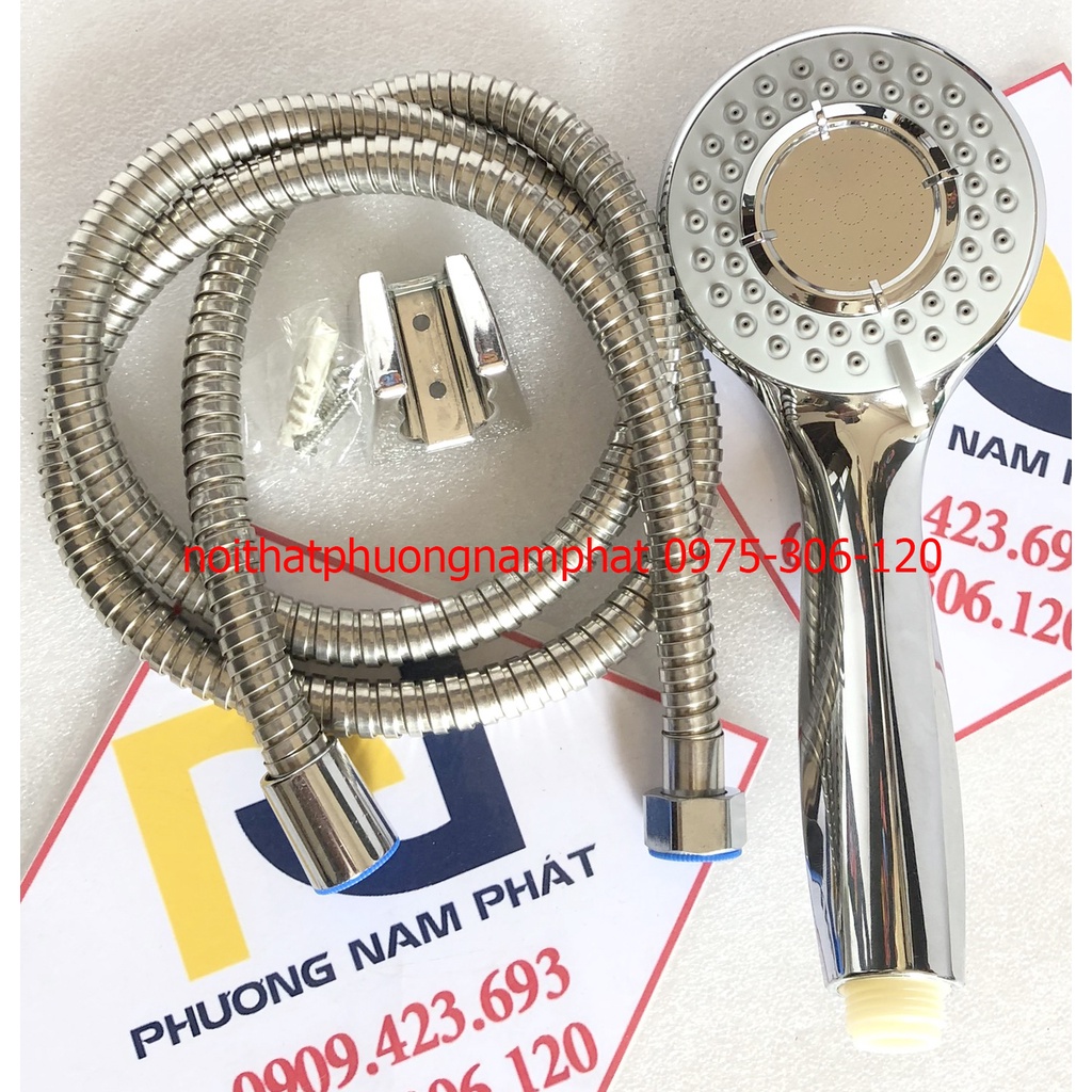 Bộ sản phẩm gồm: tay sen tắm + dây sen + cài sen + ốc vít, sản phẩm đã đầy đủ khách chỉ việc lắp đặt