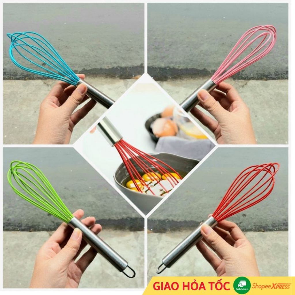 Nhà cửa & Đời sống > Dụng cụ nhà bếp > Phới đánh trứng || [NHIỀU MÀU] Dụng cụ đánh trứng khuấy bột cầm tay bằng silicon cán inoxCòn hàng