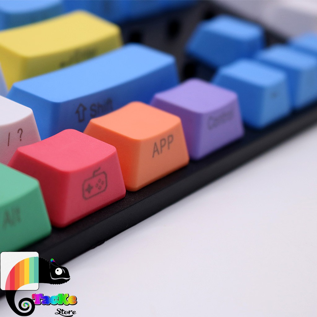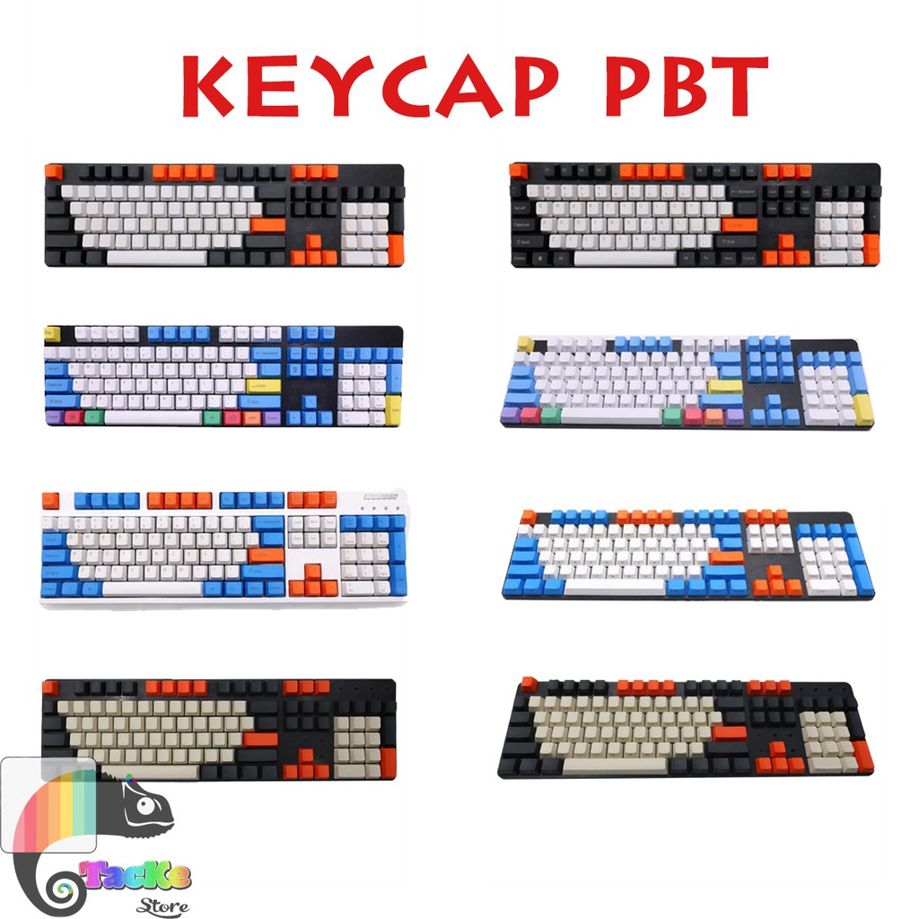 - Set keycap PBT này gồm 108 nút. Bao gồm 104 nút thông dụng và 4 nút Mutimedia 1 số bàn phím cơ hay dùng