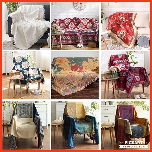 Giới thiệu [NHIỀU MẪU - Size 1m8x2m3] Thảm trải sàn họa tiết thổ cẩm decor phòng, homestay phong cách vintage siêu đẹp mắt