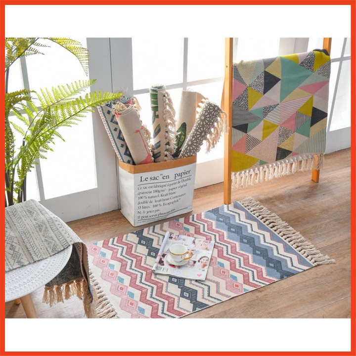 ✔ Thảm được dệt bằng vải cotton thấm hút cực tốt, đem đến sự gọn gàng cho căn phòng của bạn