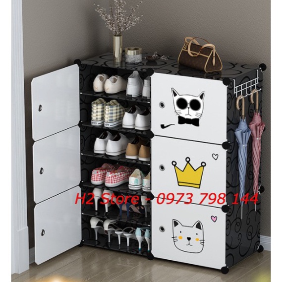[NHIỀU MÀU] - TỦ GIÀY CHIA Ô 12 NGĂN ĐỂ GIÀY DÉP THÔNG MINH CỬA MÈO VUA DỄ THƯƠNG