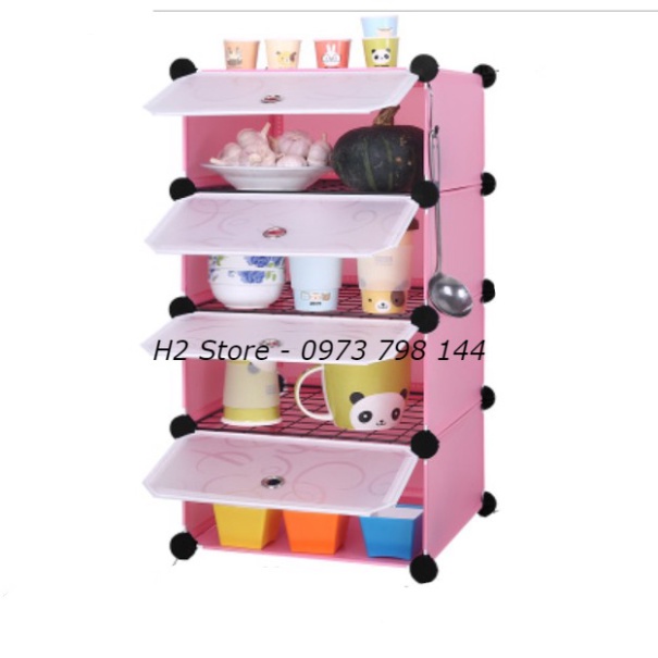Giới thiệu [NHIỀU MÀU] - TỦ NHỰA ĐỂ ĐỒ NHÀ BẾP ĐA NĂNG THÔNG MINH 4 Ô (1x4) CỬA TRẮNG TRONG size to