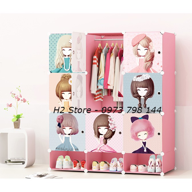 [NHIỀU MẪU] TỦ NHỰA LẮP GHÉP 9 Ô + 3 GIÀY VÁCH HỒNG ĐỂ ĐỒ CHO BÉ ĐA NĂNG THÔNG MINH sâu 47cm
