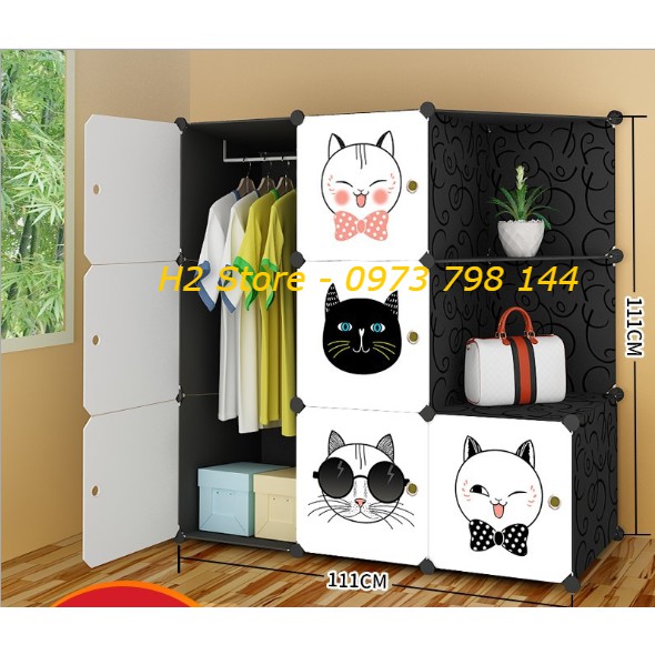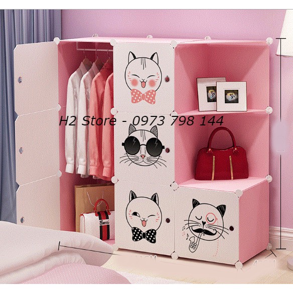 [NHIỀU MÀU] - TỦ NHỰA LẮP GHÉP ĐA NĂNG 9 Ô (2 KỆ GÓC) CỬA MÈO NƠ CUTE THÔNG MINH SIZE TO
