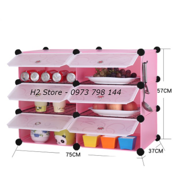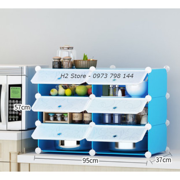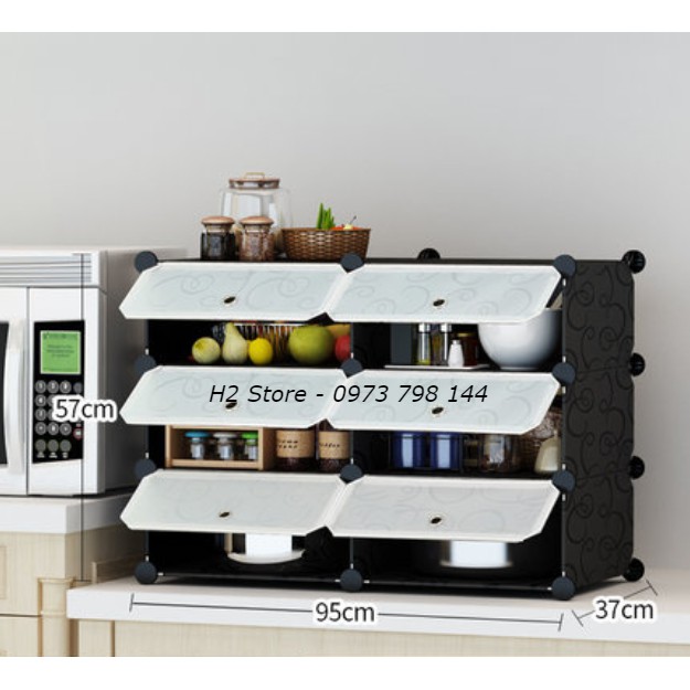 Giới thiệu [NHIỀU MÀU] - TỦ NHỰA LẮP GHÉP ĐỂ GIA VỊ, BÁT ĐĨA ĐA NĂNG 6 Ô CỬA TRẮNG TRONG size to