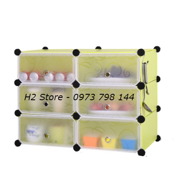 [NHIỀU MÀU] - TỦ NHỰA LẮP GHÉP ĐỂ GIA VỊ, BÁT ĐĨA ĐA NĂNG 6 Ô CỬA TRẮNG TRONG size to