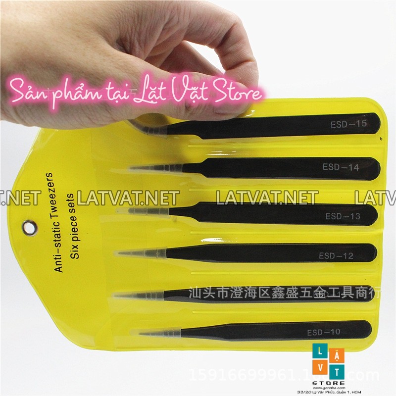 Nhà cửa & Đời sống > Dụng cụ & Thiết bị tiện ích > Dụng cụ > Hộp dụng cụ cầm tay || Bộ Nhíp 6 cây bằng thép không gĩ dùng gắp đồ điện tử, điện thoại, sữa chữa đa dụng, nhíp gắn lông miCòn hàng