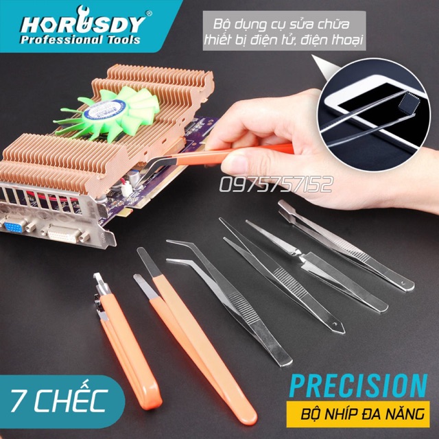Giới thiệu Bộ nhíp chính xác cao 7 chi tiết HORUSDY, thép không gỉ, chống tĩnh điện, chế tác trang sức, sửa chữa linh kiện điện tử