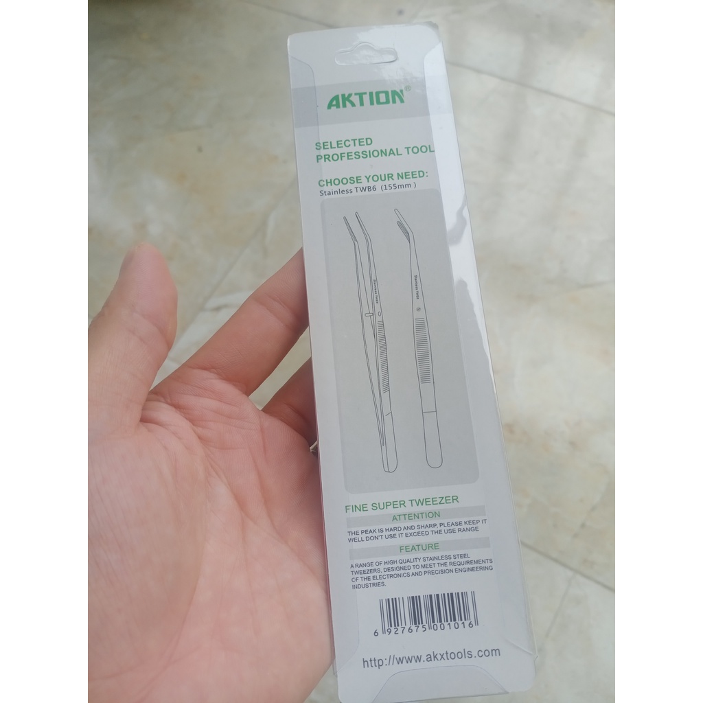Giới thiệu Nhíp gắp chỉ cong loại cao cấp Stainless TWE6 dài (155mm) AKTION