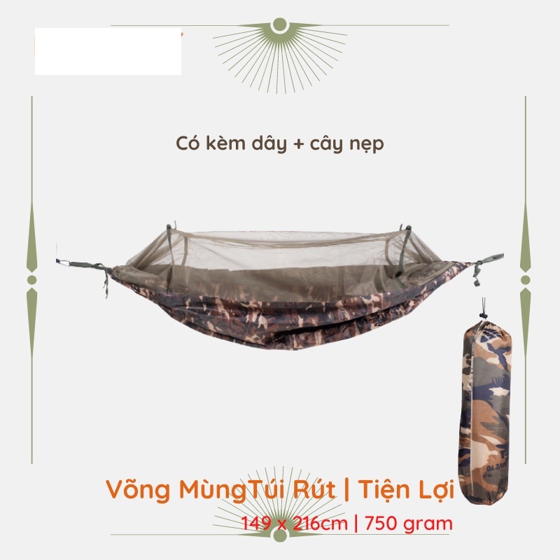 Thể Thao & Dã Ngoại > Dụng Cụ Thể Thao & Dã Ngoại > Cắm Trại & Dã ngoại > Võng || [NHỎ GỌN] Võng MùngTúi Rút | Tiện Lợi | Vải Trơn | Có Kèm Dây + Cây Nẹp | VT MARTCòn hàng