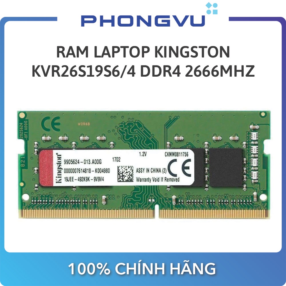 PHONG Vũ Official Store ShopeeBộ nhớ laptop DDR4 Kingston 4GB (2666) (KVR26S19S6/4) - Bảo hành 36 tháng