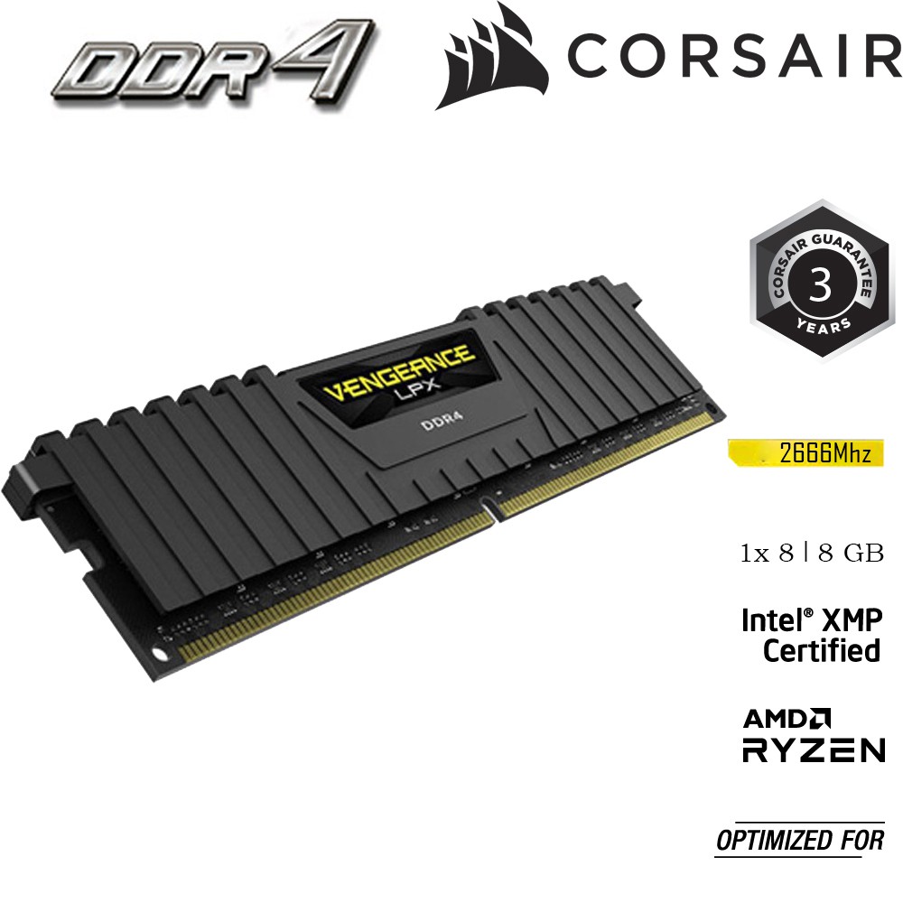 Máy tính & Laptop > Linh Kiện Máy Tính > Ram Máy Tính || [Mã ELMALL10 giảm 10% đơn 500K] Bộ nhớ RAM dành cho PC CORSAIR VENGEANCE LPX CMK8GX4M1A2666C16 1x 8GB DDR4 Buss 2666 MHzCòn hàng