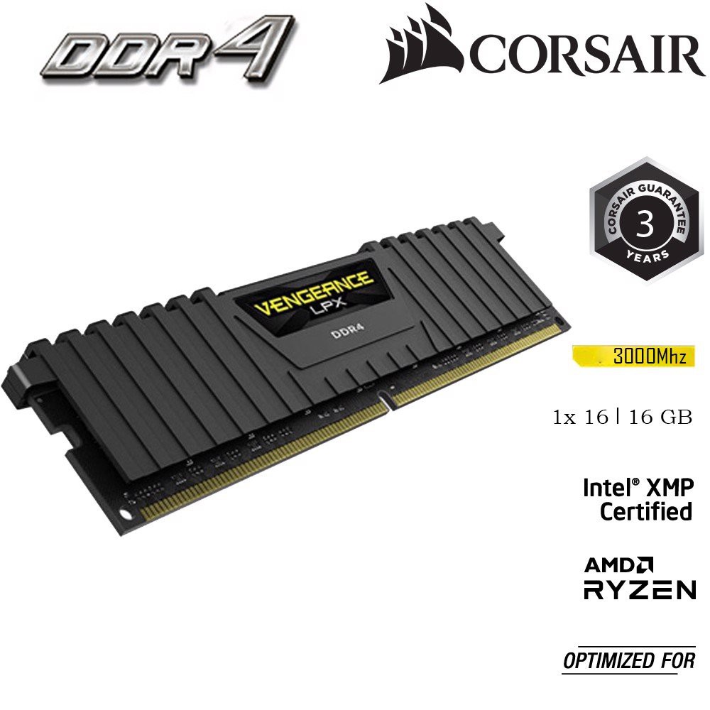 Máy tính & Laptop > Linh Kiện Máy Tính > Ram Máy Tính || Bộ nhớ RAM máy tính để bàn CORSAIR VENGEANCE LPX 16GB DDR4 1x16G 3000MHz CMK16GX4M1D3000C16Còn hàng