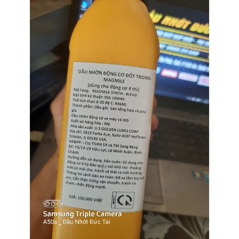 Giới thiệu Nhớt MAGMILE 10W-40 tay ga và ôtô - Mad in USA 946ml API SN, SM, SL