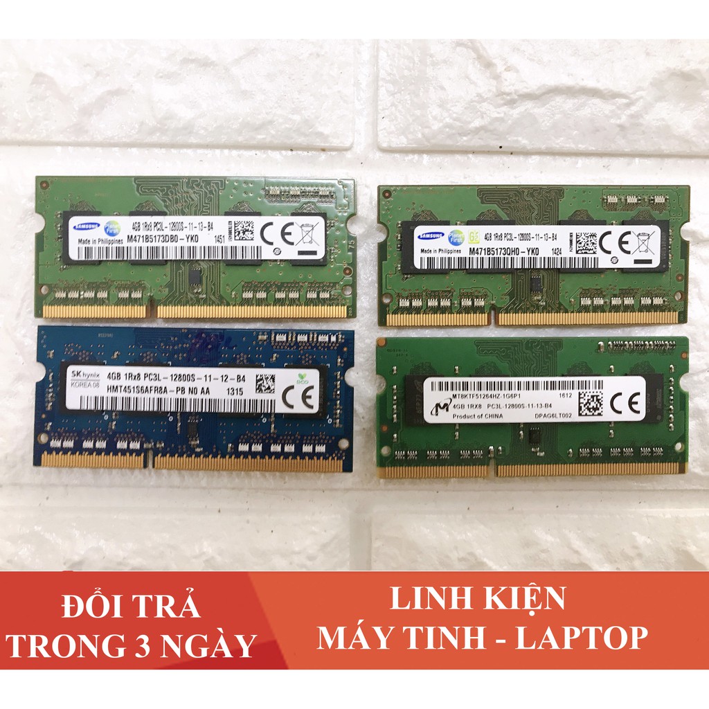 Máy tính & Laptop > Linh Kiện Máy Tính > Ram Máy Tính || Bộ nhớ trong 4Gb- RAM Laptop 4G PC3L DDR3 Bus 1600 MHz Đã qua sử dụng (Ram Laptop PC3L-4G tháo máy, đã qua sử dụng)Còn hàng